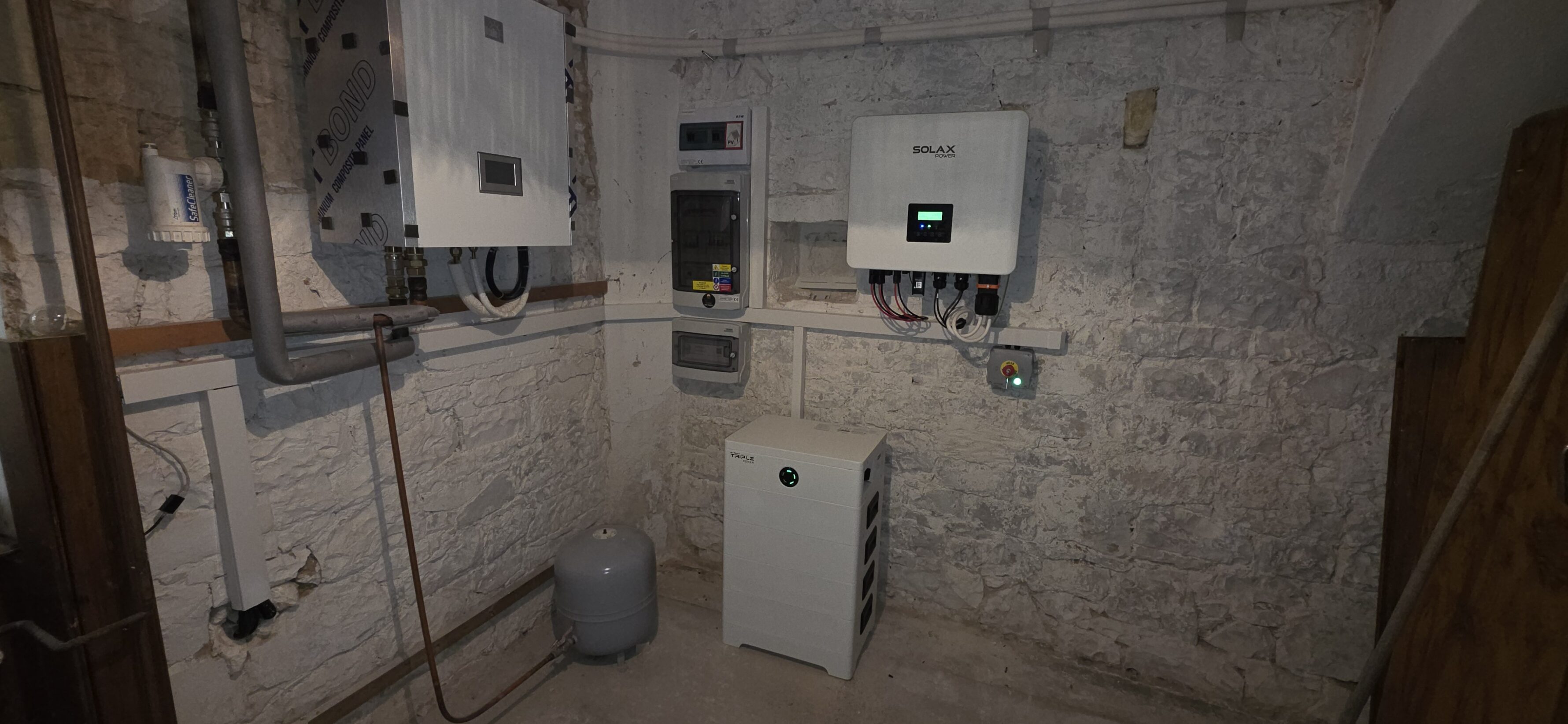 Instalaci fotovoltaické elektrárny o výkonu 10,5 kWp v lokalitě Divice tvoří 21 panelů značky AIKO Neostar o jmenovitém výkonu 500 Wp. Součástí je také 4x bateriové úložiště Solax T-BAT-SYS-HV-S o kapacitě 3,6 kWh. Celková kapacita bateriového úložiště je 14,75 kWh. Majitelé této nemovitosti tak mají dostatek elektrické energie i po setmění.