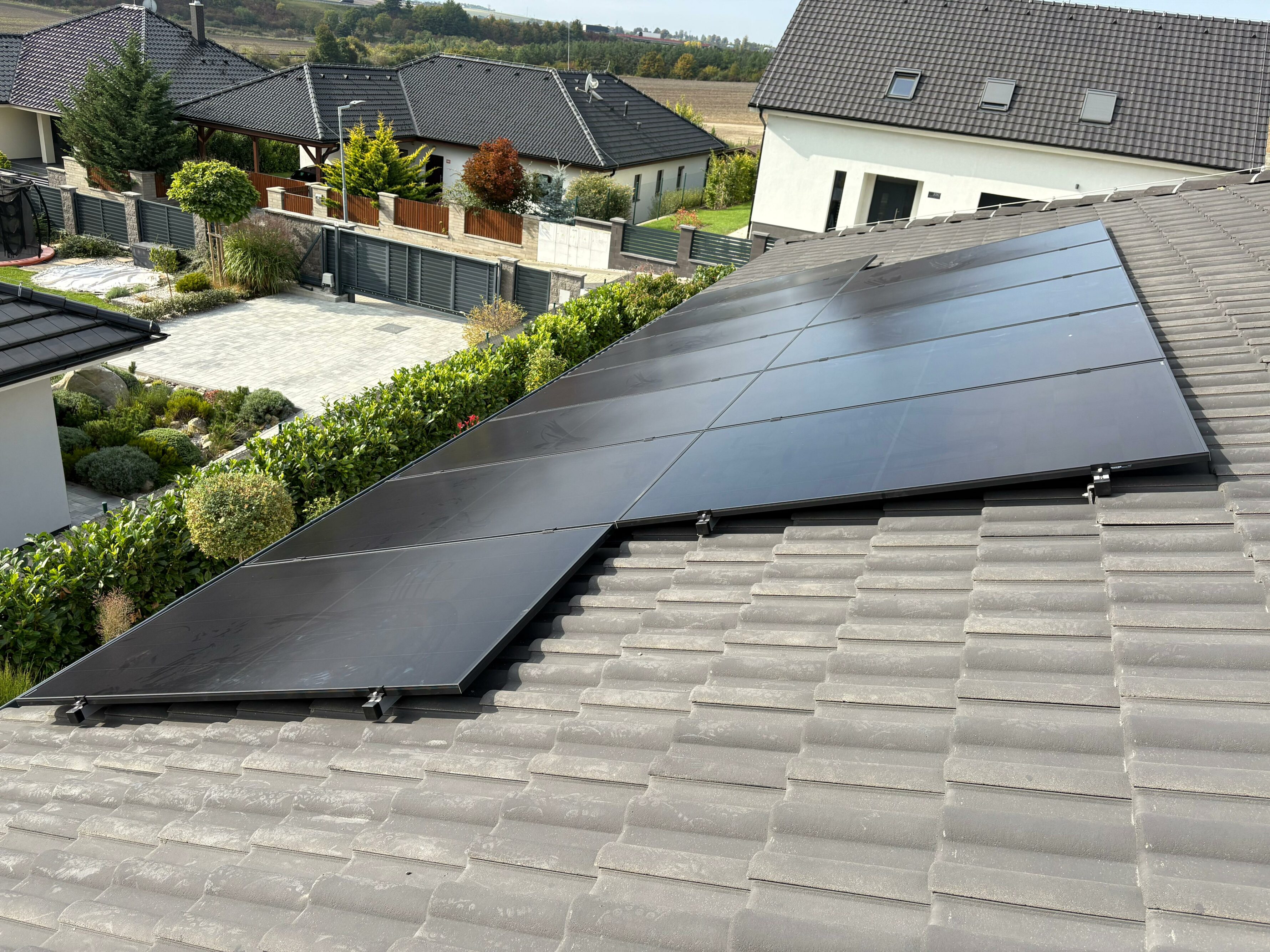Instalaci fotovoltaické elektrárny o výkonu 6 kWp v lokalitě Louny tvoří 12 panelů značky AIKO Neostar o jmenovitém výkonu 500 Wp. Součástí je také 2x bateriové úložiště Solax Triple Power T58 o kapacitě 5,8 kWh. Celková kapacita bateriového úložiště je 11,6 kWh. Majitelé této nemovitosti tak mají dostatek elektrické energie i po setmění.