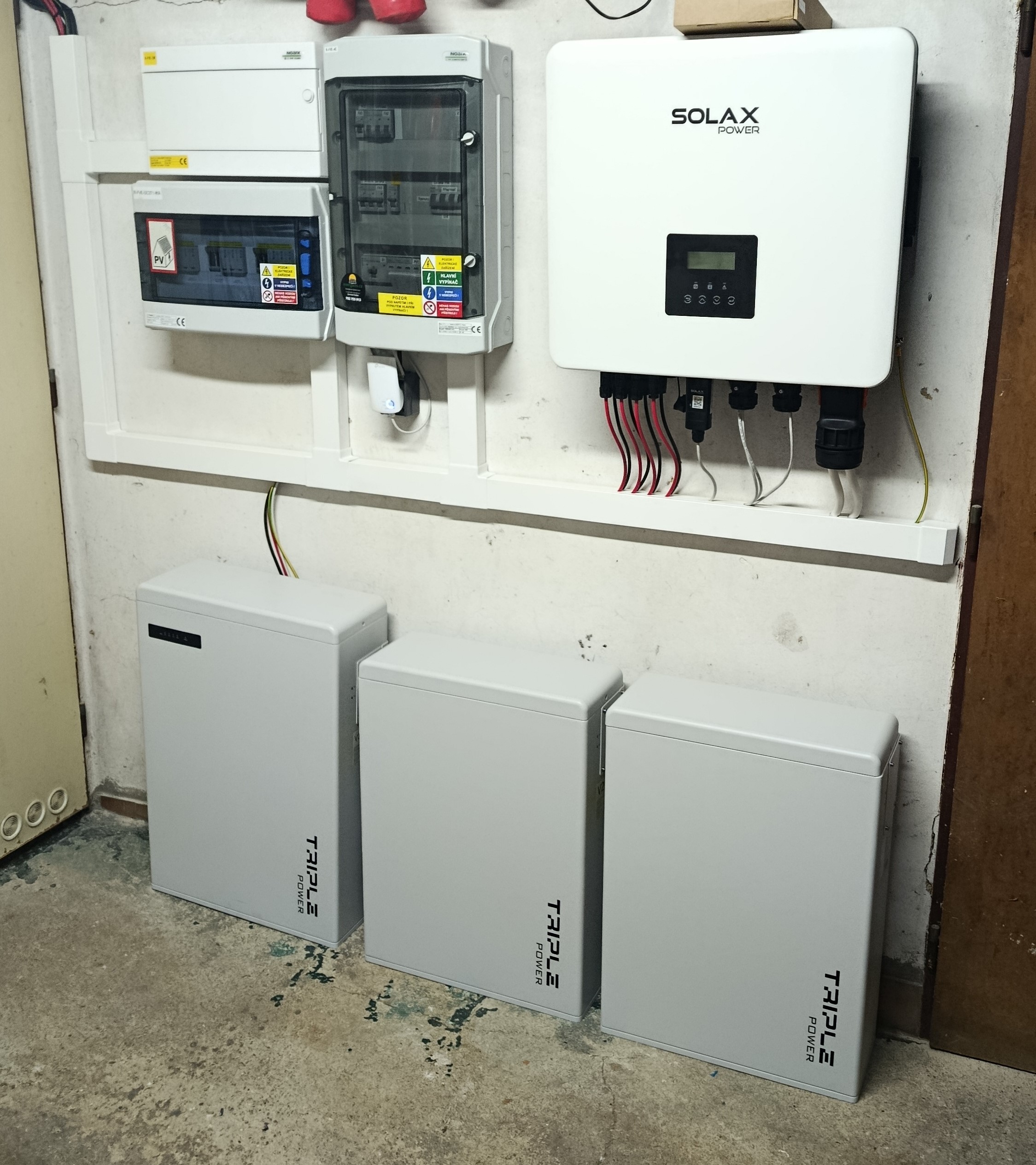 Instalaci fotovoltaické elektrárny o výkonu 9,9 kWp v lokalitě Příbram tvoří 22 panelů značky AIKO Neostar o jmenovitém výkonu 450 Wp. Součástí je také 2x bateriové úložiště Solax Triple Power T58 o kapacitě 5,8 kWh. Celková kapacita bateriového úložiště je 17,4 kWh. Majitelé této nemovitosti tak mají dostatek elektrické energie i po setmění.